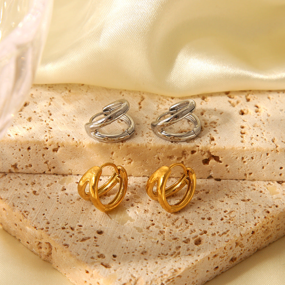 The Steph Huggies offer a modern twist on classic style. Featuring a seamless double-hoop design, this versatile pair blends effortlessly into any look. Perfect for everyday wear, they add just the right amount of detail whether they are worn alone or stacked.